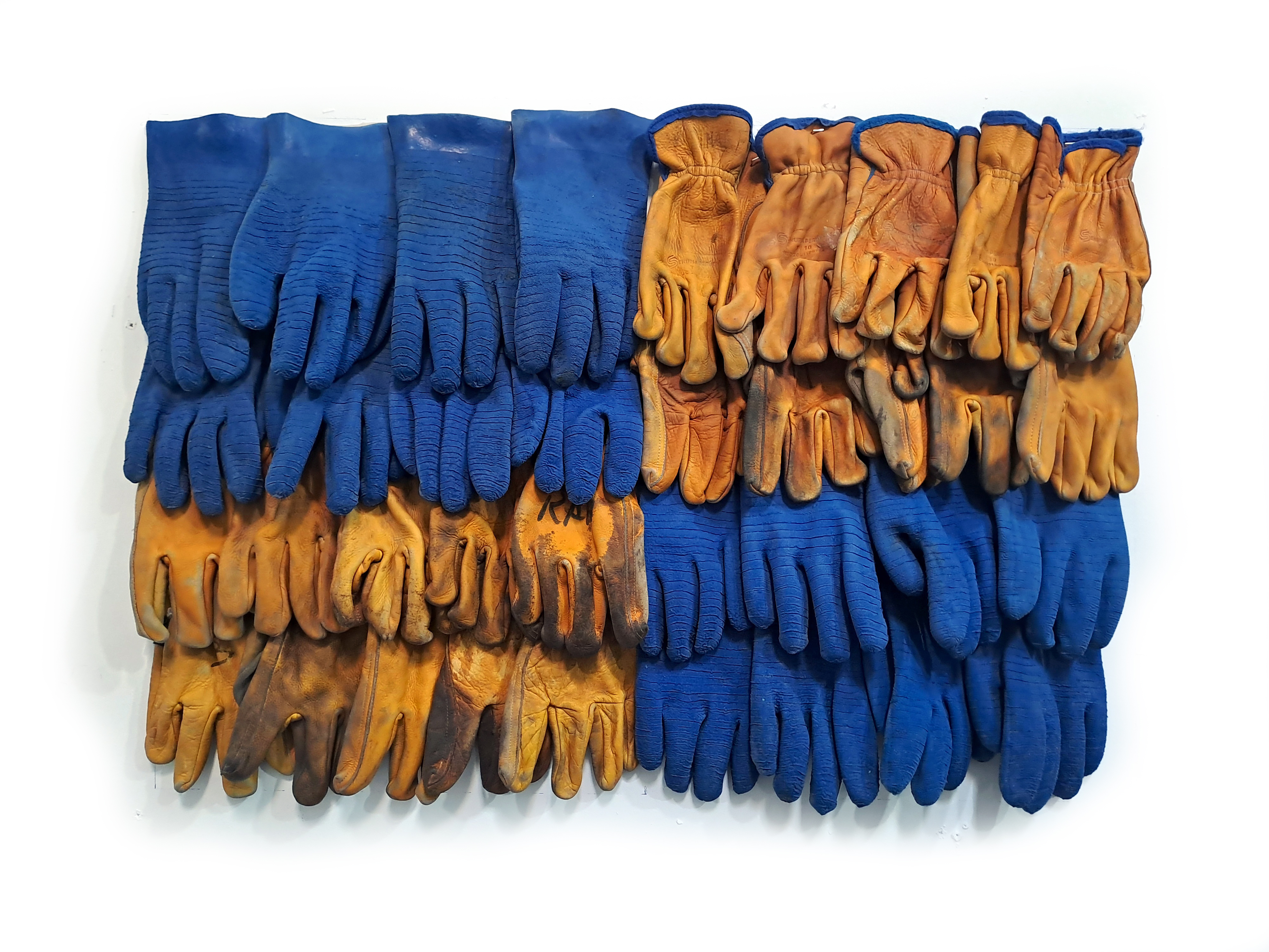 Guantes de cuero usados de mineros y trabajadores de aeropuerto